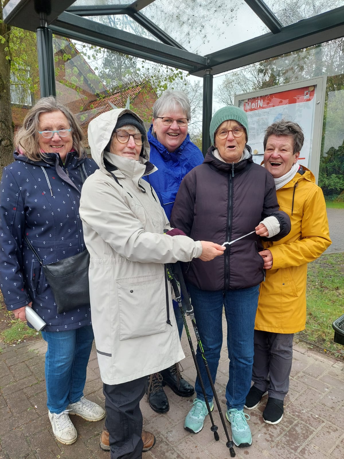 Aufgrund einer Hallennutzung durch die Grundschüler fiel an diesem Montagmorgen unser 60plus-Turnen aus. Alternativ hierzu begaben wir uns bei Schietwetter, aber mit regenfester Kleidung ausgerüstet, auf einen Spaziergang rund um die Schwarmer Kirche mit angrenzendem Wohngebiet. Hier suchten und fanden wir unter Zuhilfenahme der Geocaching® App einige versteckte Geocaches® sowie Stationen eines Adventure Labs®, bei denen Antworten auf hiermit verbundene Fragen gefunden werden mussten. Wir hatten sehr viel Spaß bei den Entdeckungen während dieser elektronischen Schnitzeljagd.